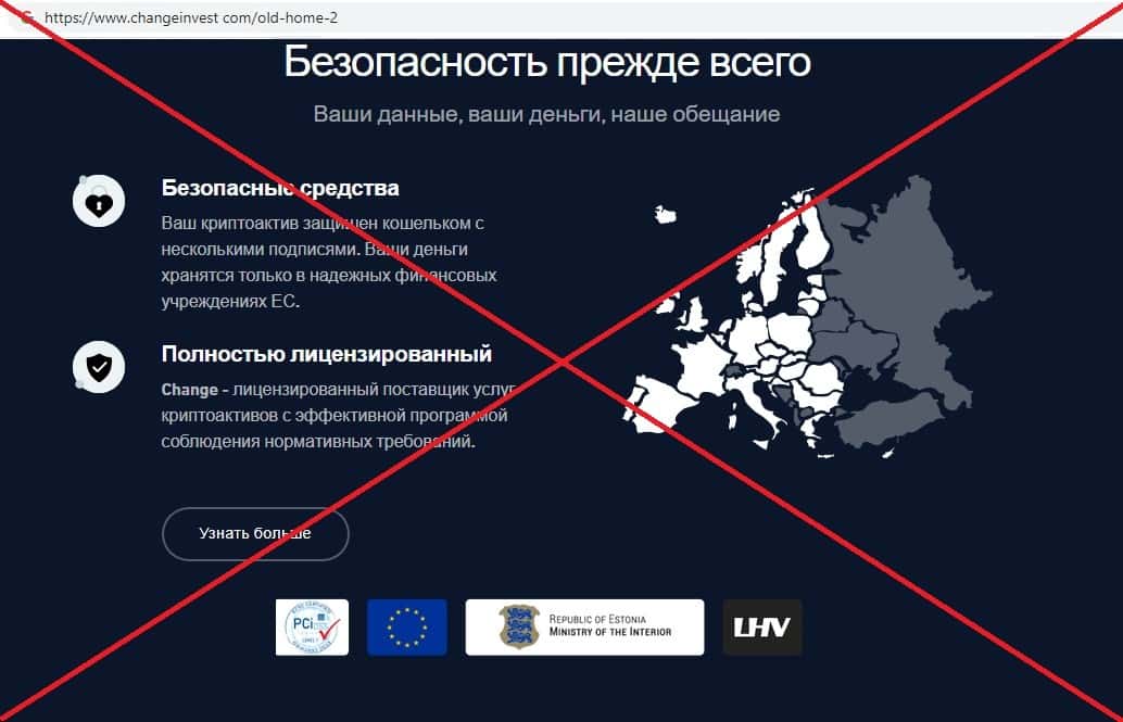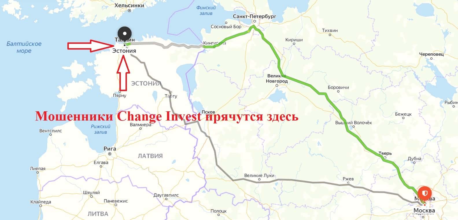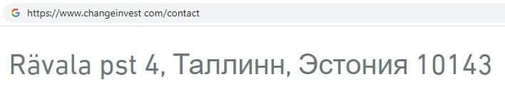 На сайте мошеннической организации ChangeInvest указано, что юридическое лицо, которому принадлежит бренд, зарегистрировано на территории Эстонии.