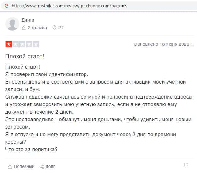 Пользователь пишет о том, что аферисты Change Invest обманули его на деньги, угрожая заблокировать его учетную запись в случае не прохождении идентификации.