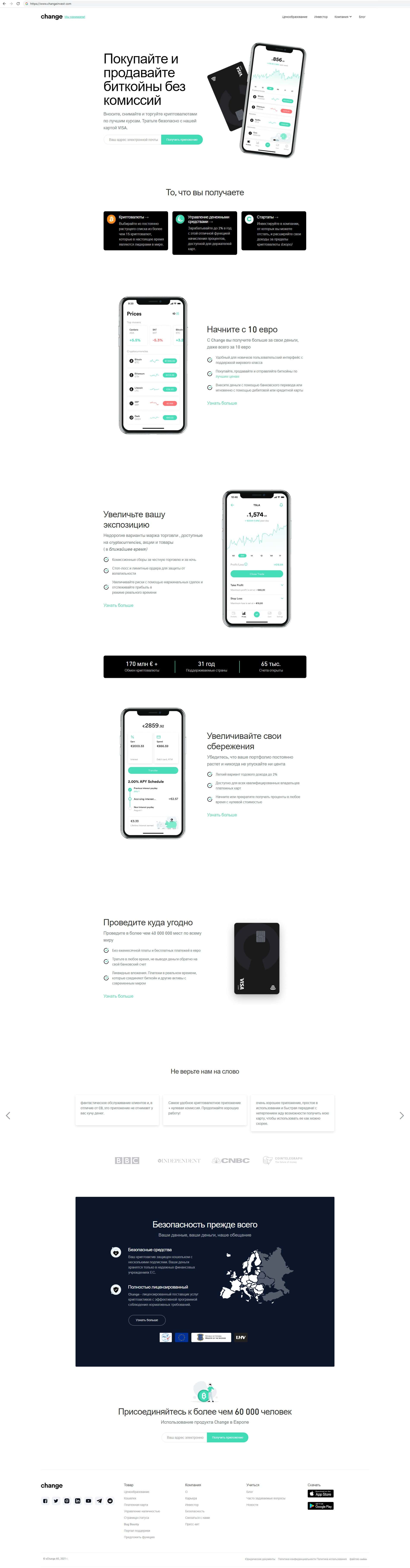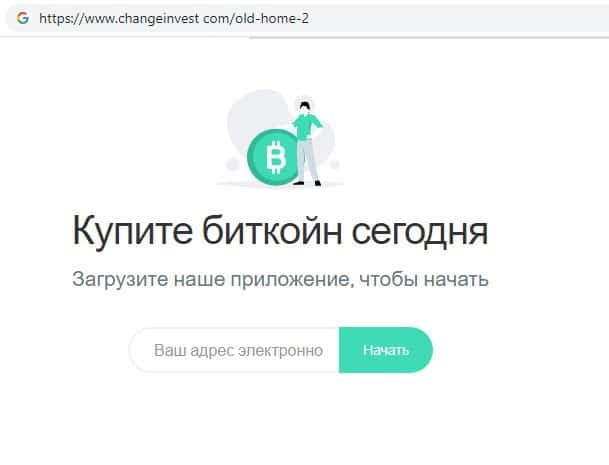 В данном разделе предлагаем увидеть скрин главной страницы веб-сервиса шараги Чейндж Инвест, помните о том, что проекты часто меняют название домена своего сайта.