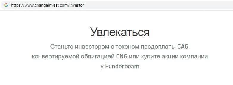Жулики Change Invest предлагают купить акции у скам-компании FunderBeam, которая обворовывает пользователей своего сайта.