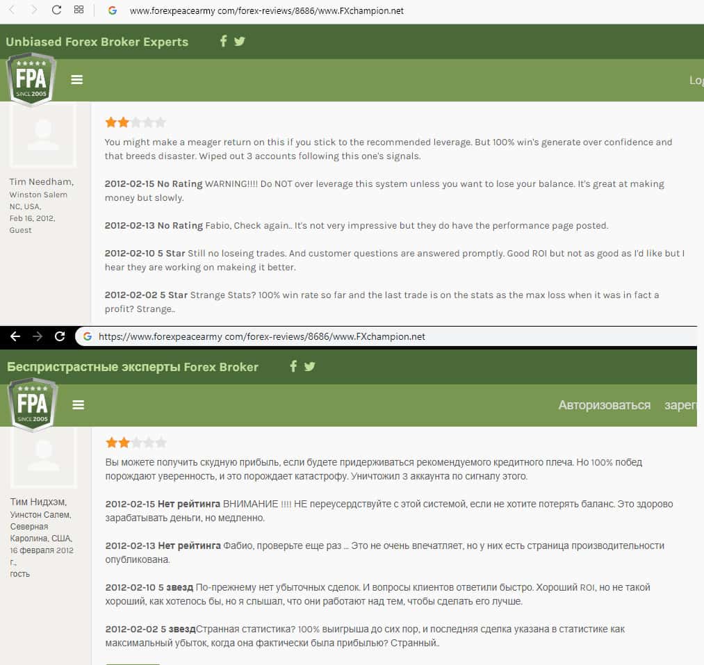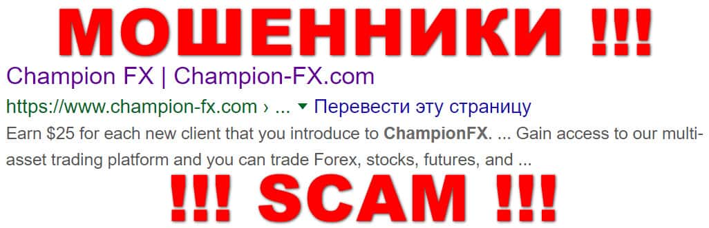 - Не доверяйте мошеннической организации Чемпион ФХ