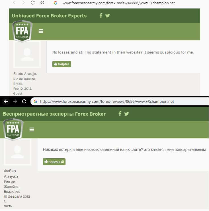- Человек не верит, что в конторе ChampionFX нет убытков