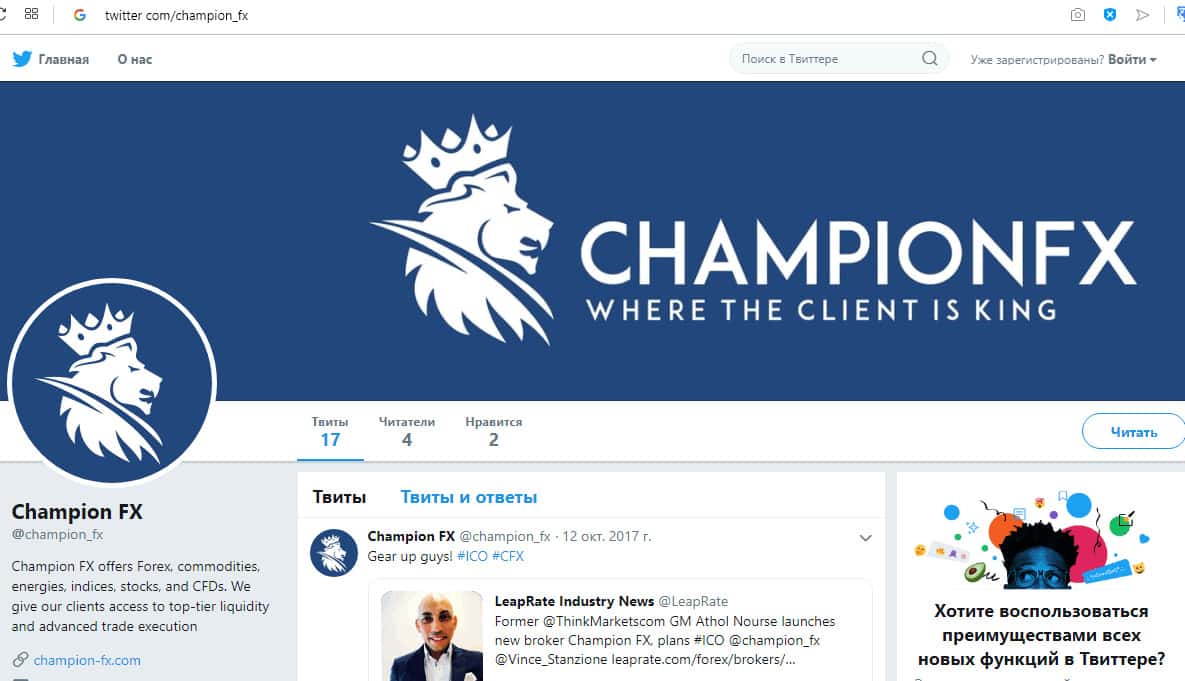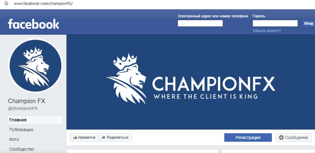 - Деятельность лохотрона ChampionFX в социальных сетях