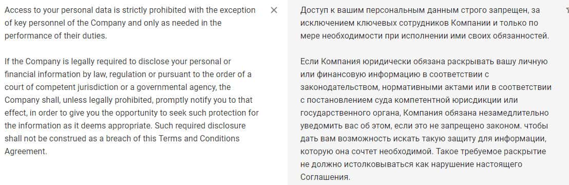 В политике конфиденциальности тоже не все так просто, так как аферисты Чемпион ФХ предлагают согласиться своим клиентам с двойными стандартами по защите личных данных клиентов. С одной стороны они охраняют доступ к этой информации, а с другой имеют право делиться ею без несения какой-либо ответственности.