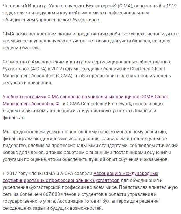 Начинается ресурс липовой финансовой компании CIMA стандартно с описания, что собой представляет данный орган и какие его основные функции. СИМА Глобал якобы является ведущим и крупнейшим в мире профессиональным объединением управленческих бухгалтеров, а, по факту просто крышует псевдоброкерские компании по всему миру.