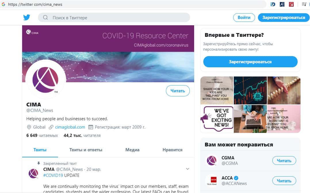 Такой же расклад, как и на Фейсбуке, руководство лживым регулятором вложило немало бабок в раскрутку своего аккаунта на ЛинкдИне, так как именно тут существует реальная возможность заманить в свою ловушку бизнесменов и состоятельных клиентов, чтобы выманить с них побольше денежек. Адрес аккаунта linkedin com/school/cima/