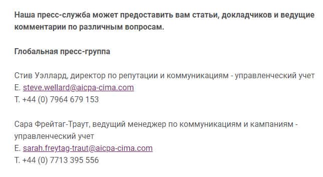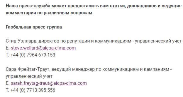 - электронная почты steve wellard@aicpa-cina com и sarah freytag@aicpa-cina com