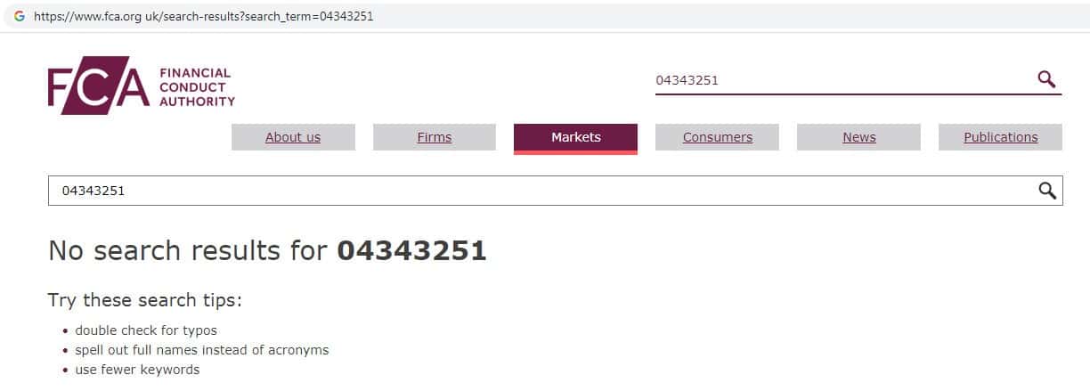 На официальном сайте финансового регулятора Великобритании fca org uk нет никакой информации о регистрационном номере скам-конторы Сикс Маркетс.
