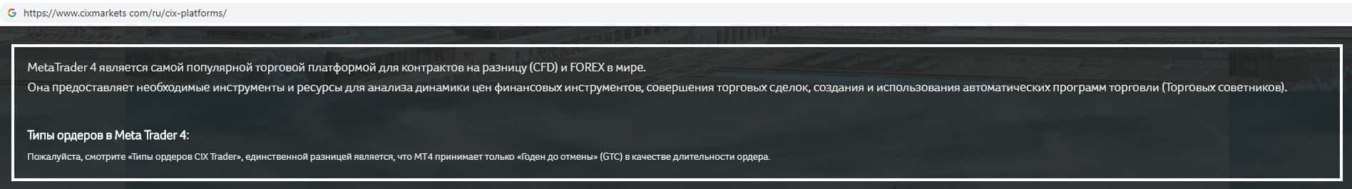 - Обзор главной страницы жульнической конторы Cix Markets