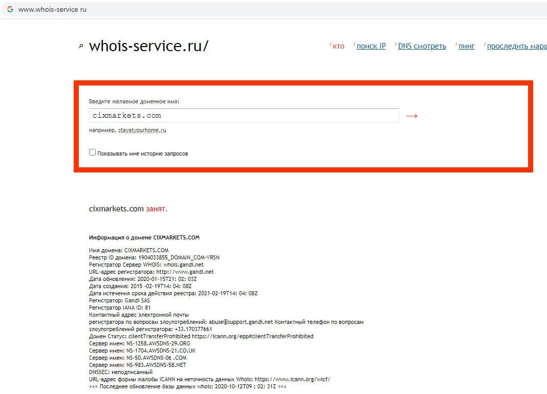 Сервис whois-service ru не может найти данные о владельце домена сайта мошеннической организации Cix Markets, доверять сайту данной скам-конторы нельзя.