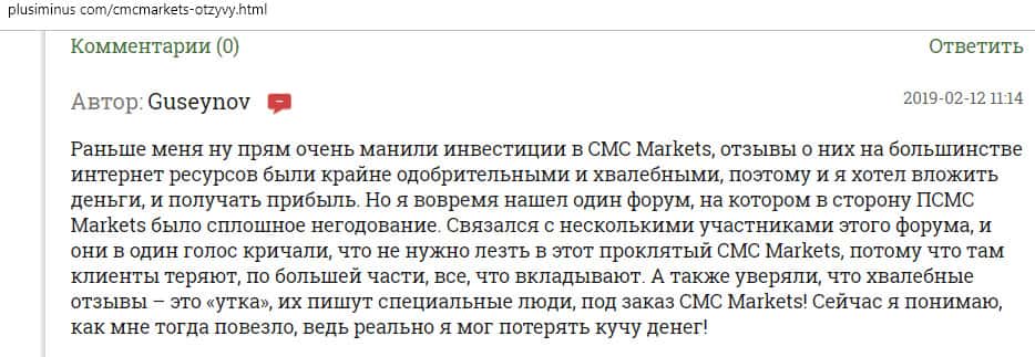 - После прочитанных отзывов клиент решил не связываться с ДЦ CMC Markets