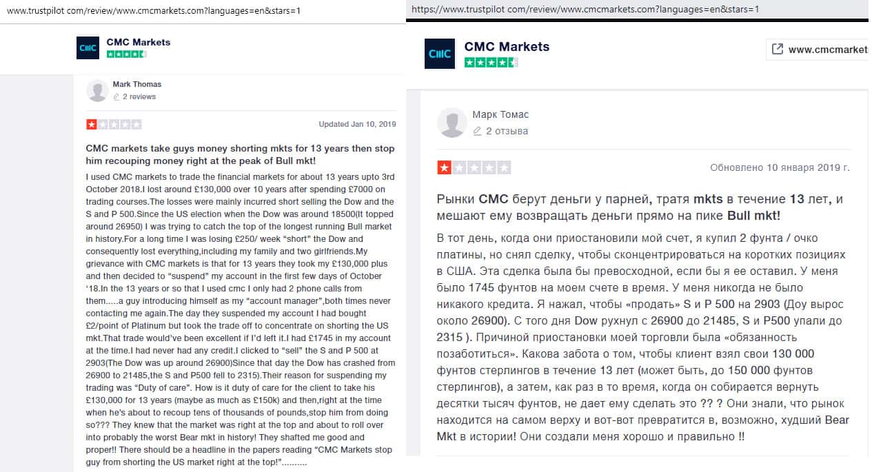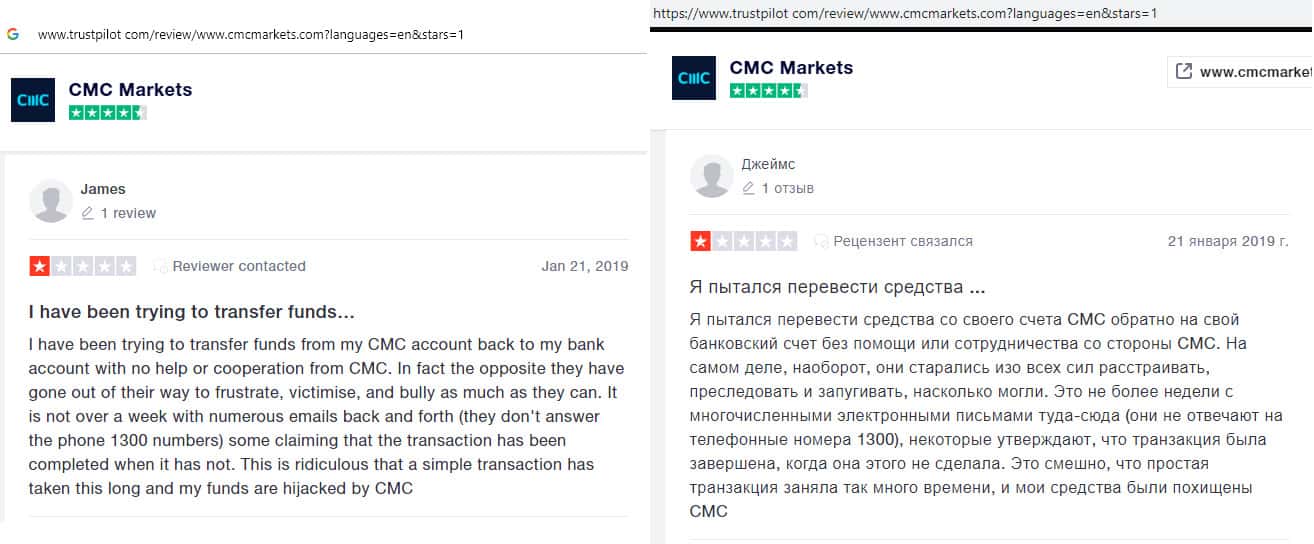 Очередной пострадавший от лап мошенников CMC Markets рассказал свою историю, как он попался на удочку к ним и узнал об этом только спустя год. До этого работало все нормально, так как клиент не задавал лишних вопросов и деньги соответственно не выводил. Но когда настало время, ему просто заблокировали доступ к счету.