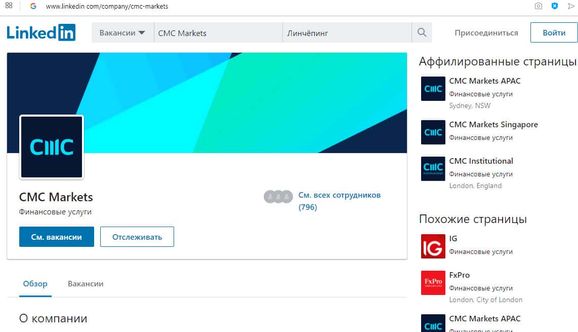 - аккаунт в ЛинкедИнlinkedin com/company/cmc-markets