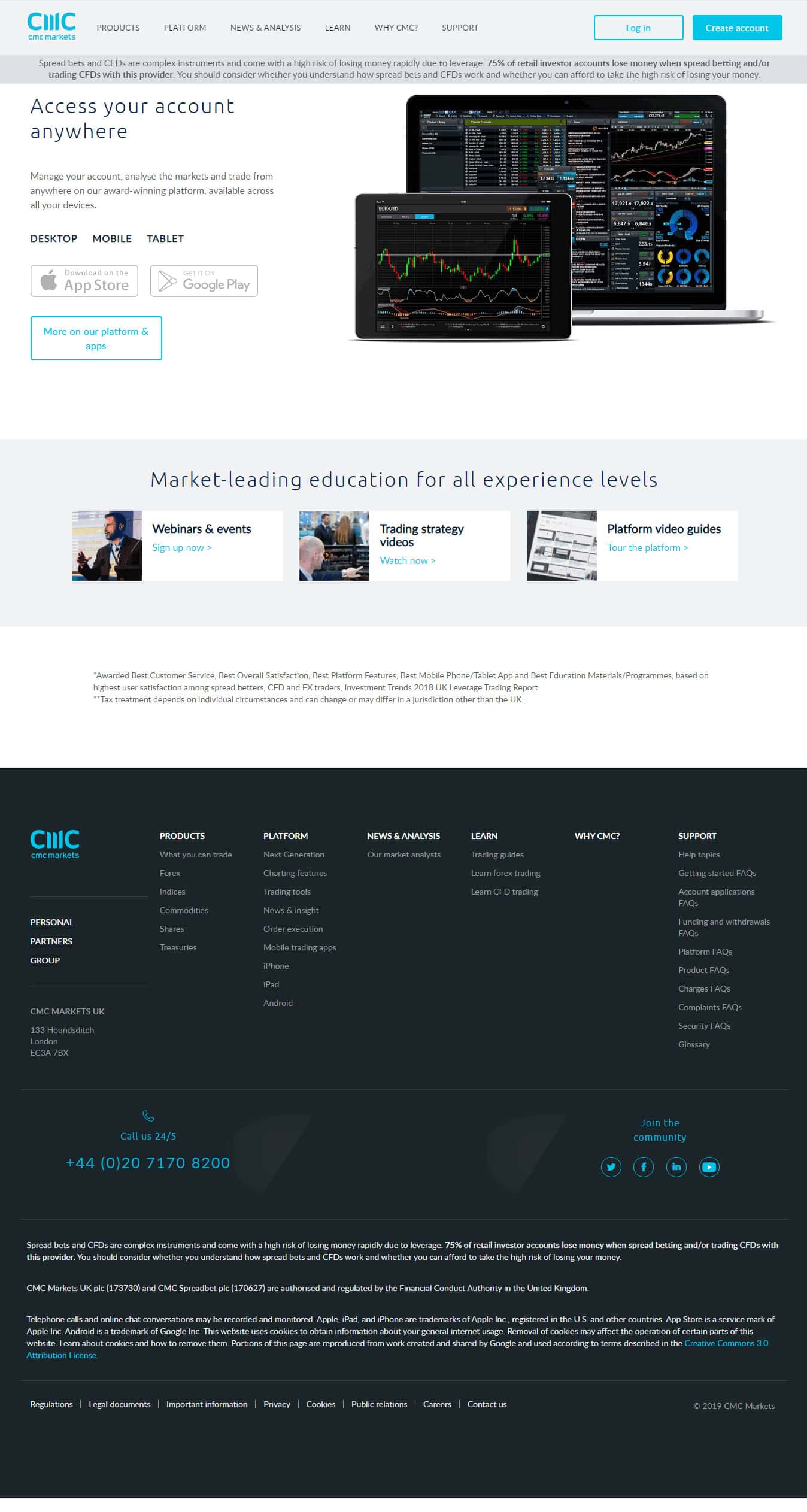 Брокерская кухня CMC Markets не жалела денег, чтобы создать более-менее нормальный и привлекательный сайт. Все это сделано для банальной заманухи, чтобы интернет-пользователь особо не вникал что написано на ресурсе, а сразу жал на кнопку с регистрацией, сделав выводы о брокере на основе оформления сайта.