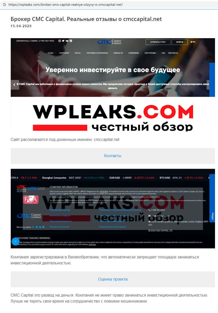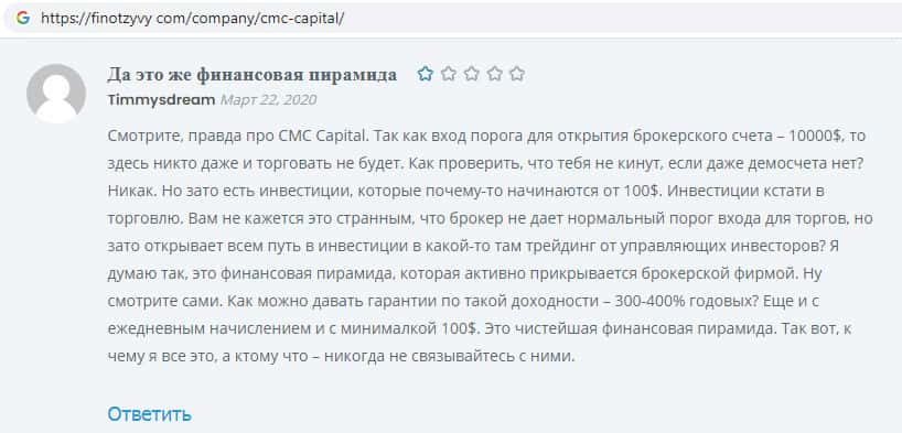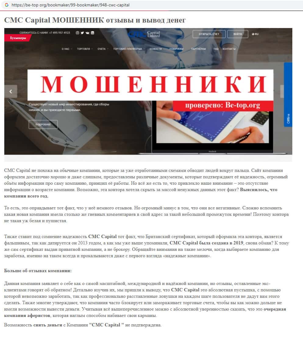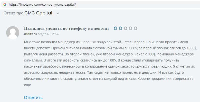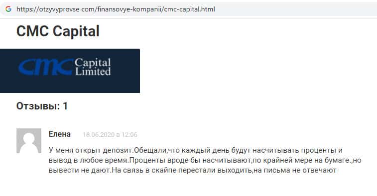 Обзоры аферистов CMCCapital Net на других онлайн-сервисах