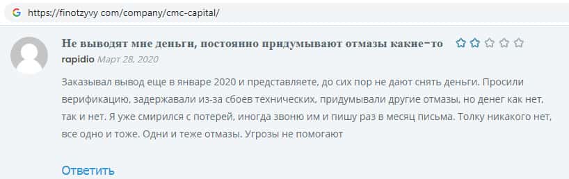 - Обзоры аферистов CMCCapital Net на других онлайн-сервисах