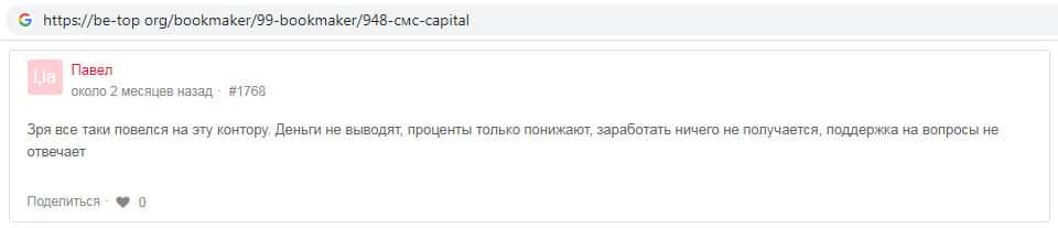 - Отзывы о скам-конторе СМС Капитал, ныне присутствующие в сети-интернет