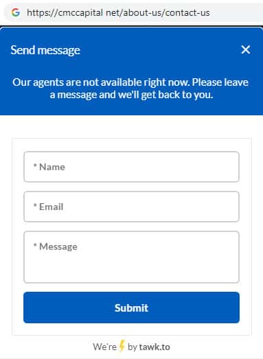 Так же представители конторы CMCCapital Net предоставили в качестве обратной связи онлайн-чат, при помощи которого ведут сбор данных о клиенте, фиксируя все данные на сайте.