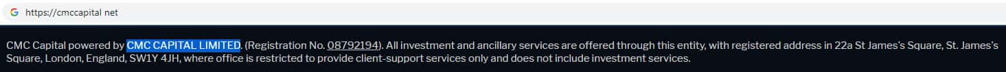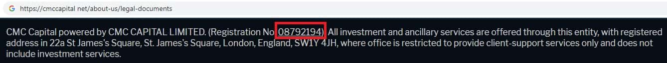 Аферисты CMCCapital Net на своем официальном интернет-ресурсе предоставляют вероятно фейковую информацию о регистрации своей компании.