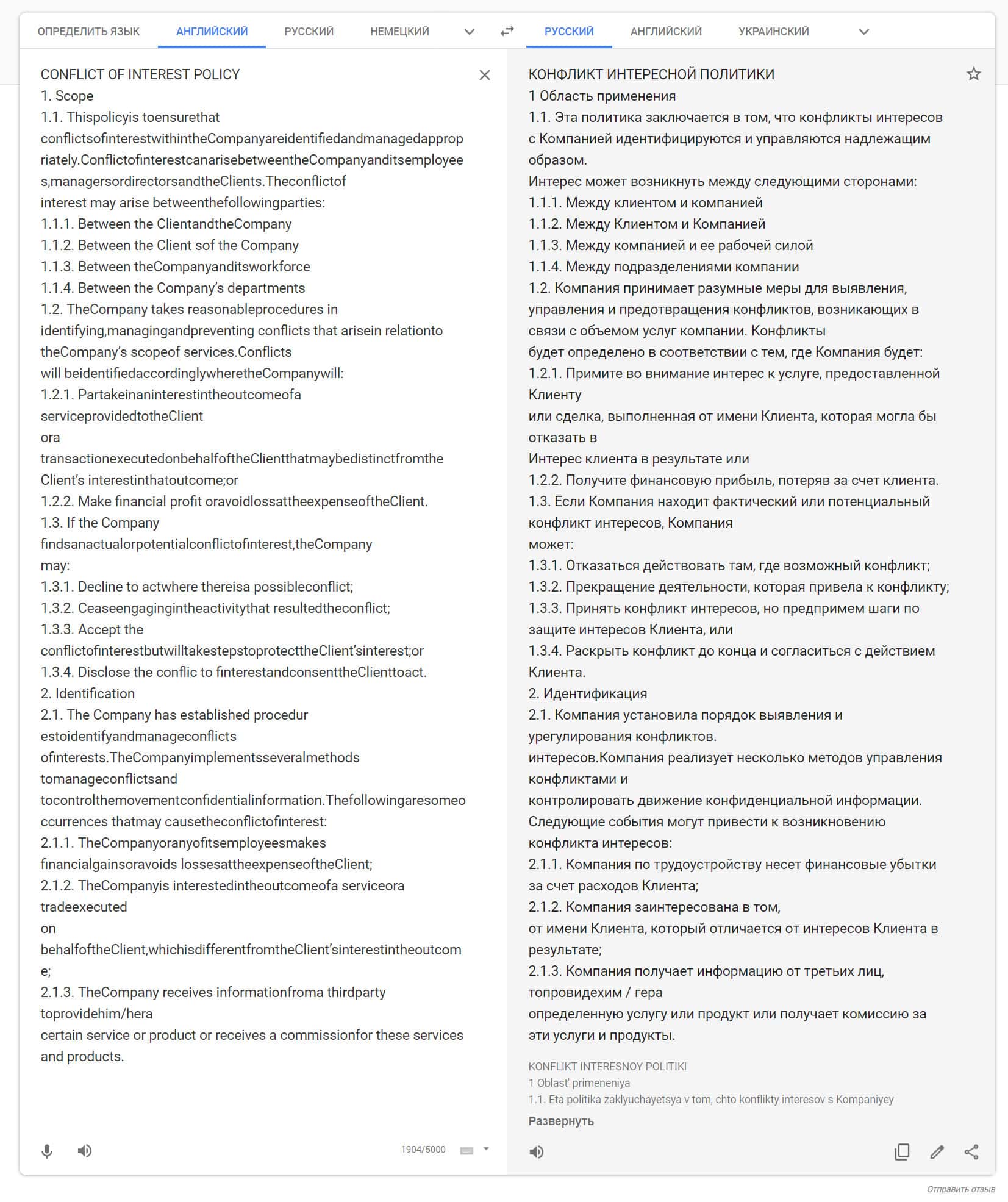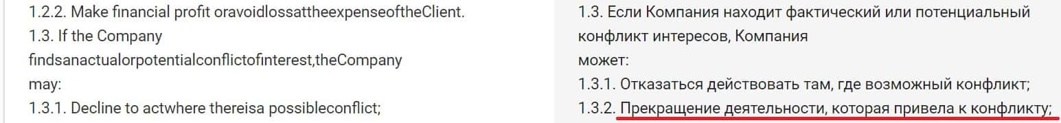Вторая часть договора лохотрона СМС Капитал, а именно: политика в отношении конфликтов интересов, была также переведена на русский язык.