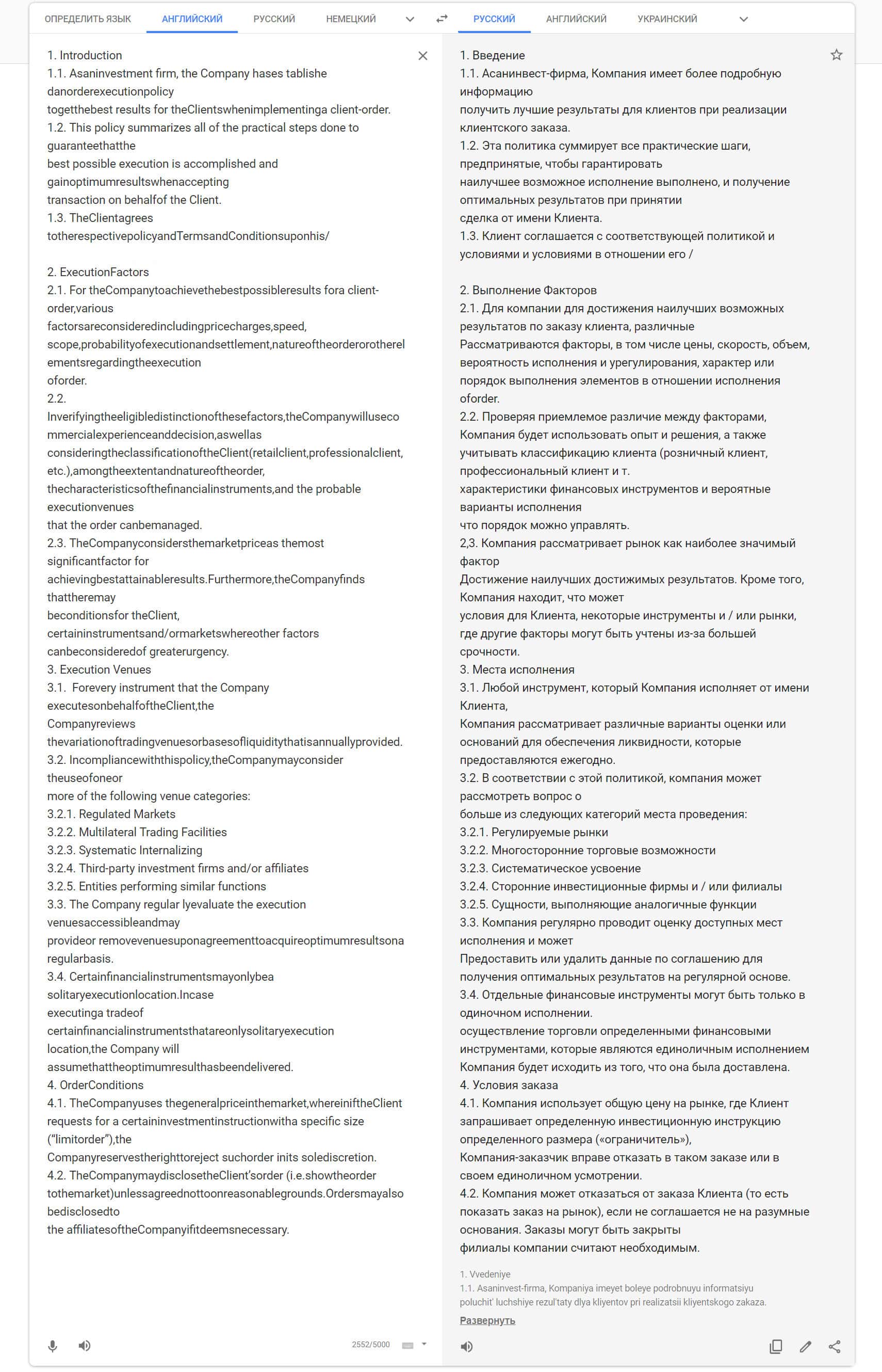 Первая часть договора лохотрона CMCCapital Net, а именно - политика исполнения сделок, была переведена на русский язык.