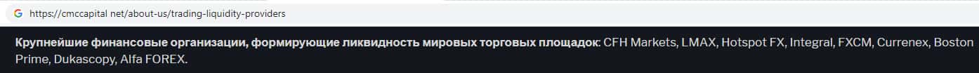Аферисты СМС Капитал в качестве поставщиков ликвидности на своем сайте предоставляют целый список жульнических контор, с которыми они работают в одной связке.