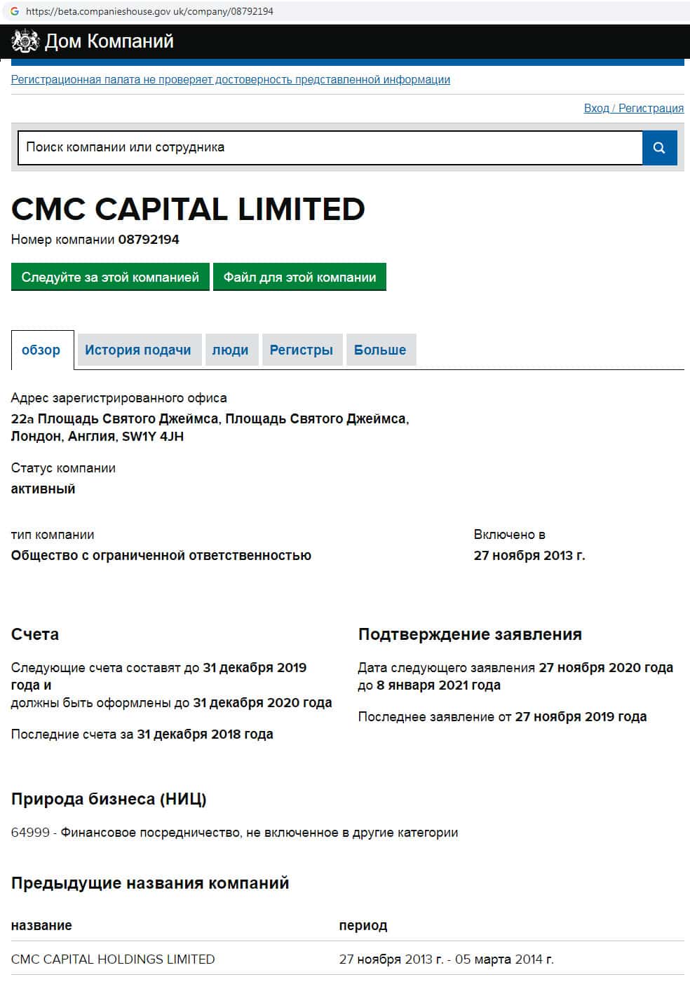 - Информация о руководстве скам-организации CMCCapital Net