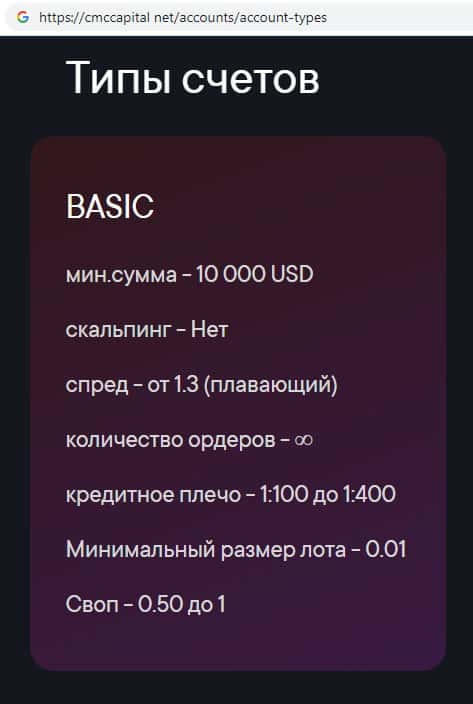 - Торговые счета предлагаемые на сайте конторы CMCCapital Net