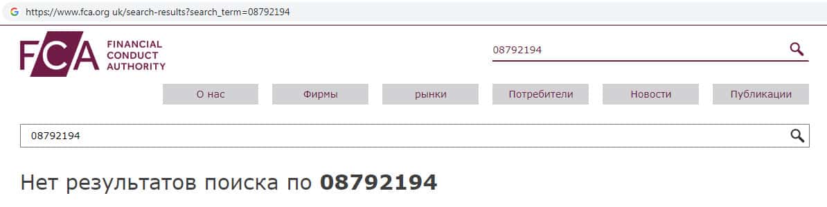 На официальном сайте финансового регулятора Великобритании был проверен регистрационный номер конторы СМС Капитал, что не дало результатов.
