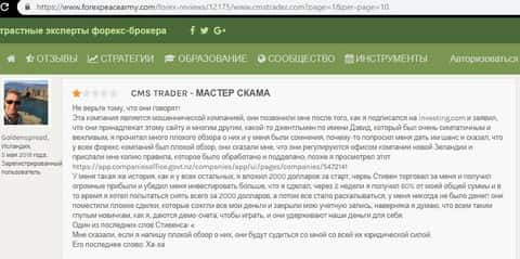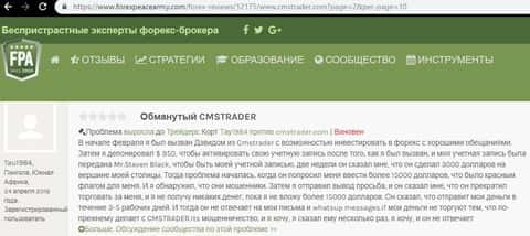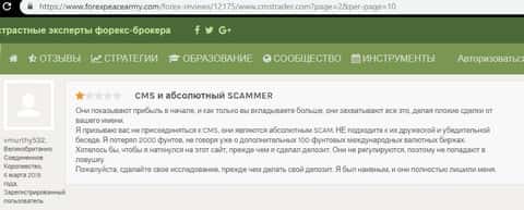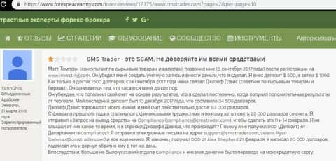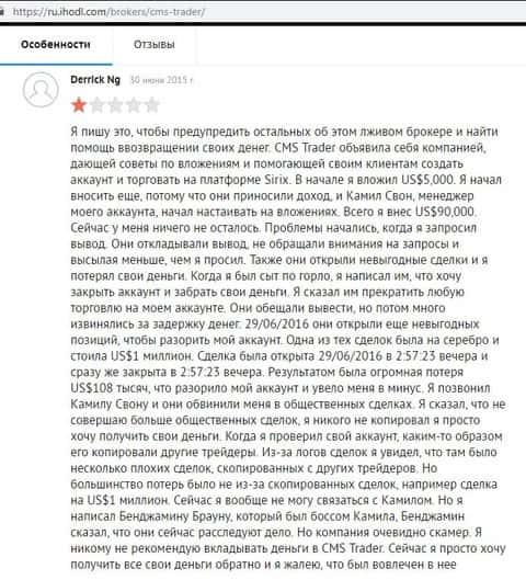Далее следует перевод данного отзыва об опрокидывание клиента конторой CMS Trader