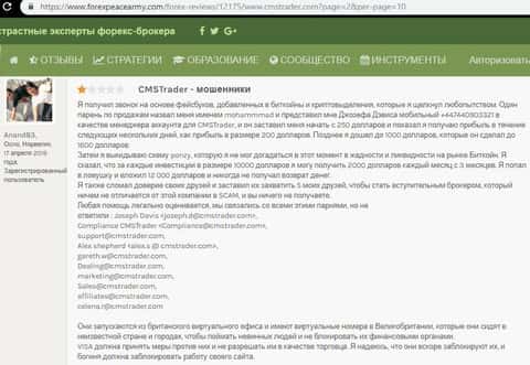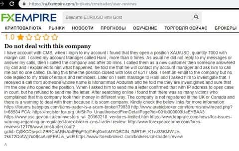 - Лохотронщики дилинговой конторы CMSTrader нагрели человека на 25 000 долларов