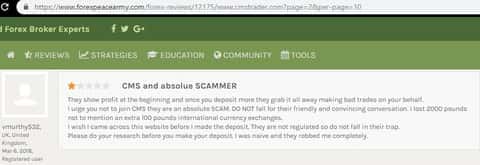 CMSTrader - лохо-контора, которая занимается отбиранием денег у своих клиентов с первых дней сотрудничества. Контора распространяет деятельность на большинство стран мира, и ведет активную воровскую деятельность уже довольно давно. Кухня зарегистрирована в Лондоне, что не спасает ее репутацию от негатива в интернет-сети. Не становитесь жертвой мошенников ЦМС Трейдеров, прочитайте все до конца!