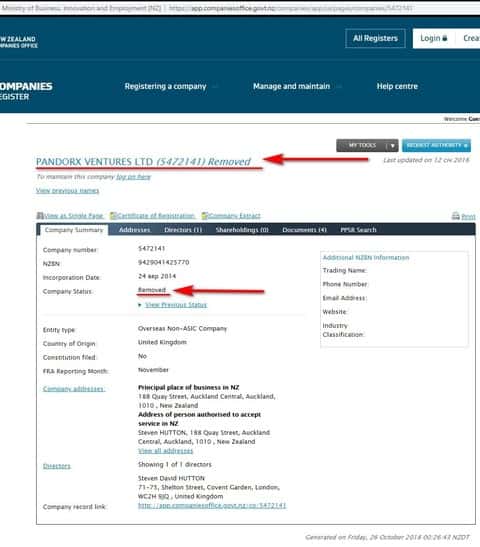 Брокерская контора ЦМС Трейдер, она же Pandorx Ventures LTD, исключена из новых регистраций Новой Зеландии, так как ведет мошенническую деятельность и не подает соответствующих документов для продления статуса.