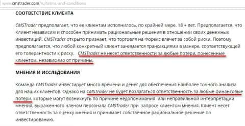 - Мошенники ЦМС Трейдер снимают с себя всю ответственность за потери клиента