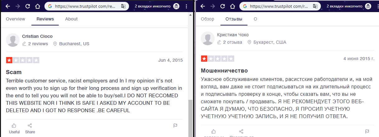 На ниже расположенном изображении вы можете наглядно увидеть и прочесть еще один реальный негативный отзыв в сторону аферистов CoinMotion, который связан непосредственно с тем, что еще один клиент столкнулся с ужасным сервисом лохотрона Коин Мотион, в результате которого проходимцы CoinMotion попросту облапошили пользователя.