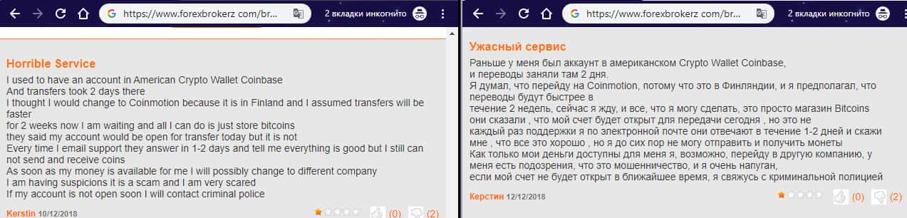Пользователь портала forexbrokerz com не рекомендует иметь дело с жуликами CoinMotion