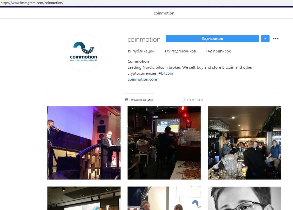 Не пожалели времени аферисты CoinMotion и на создание страницы в социальной сети Instagram, где у лохотрона Коин Мотион имеется около сотни подписчиков, что говорит о крайне низкой популярности мошенников CoinMotion на просторах сети. На изображении ниже вы можете наглядно увидеть внешний вид страницы аферистов в Instagram.