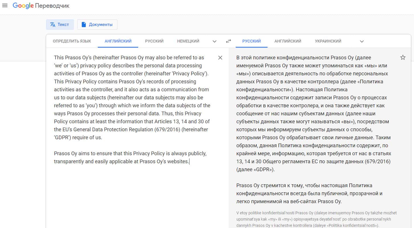 - адрес - Prasos Oy (2469683-1), Kauppakatu 39, 40100 Jyväskylä, Finland;