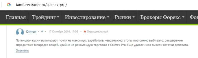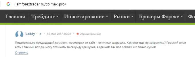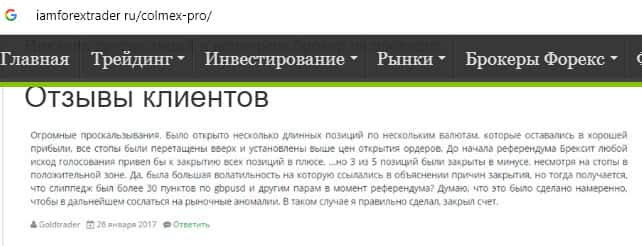 - Отзыв о лохотроне Colmex Pro с веб-сайта iamforextrader ru