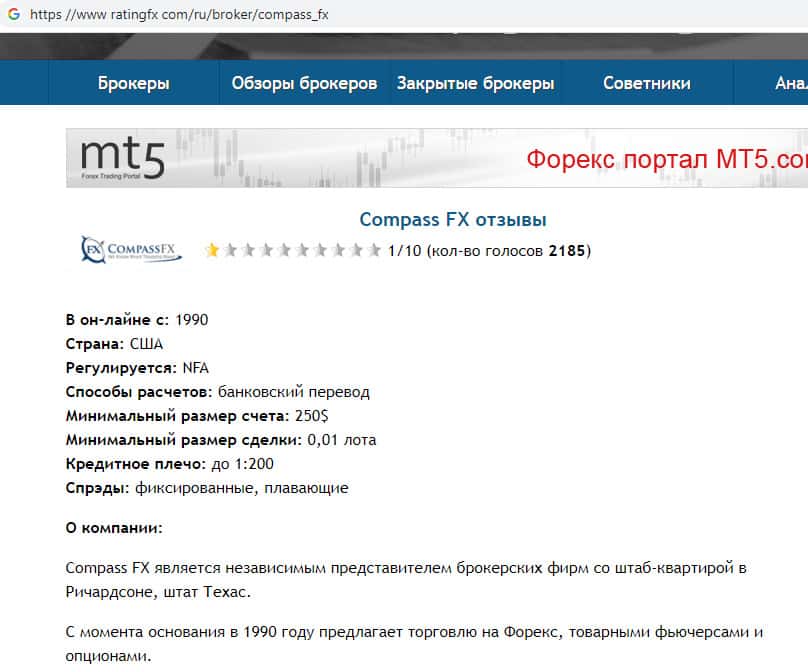 Краткий обзор интернет-портала воровской брокерской организации CompassFX