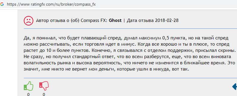 - Очередная жалоба обманутого клиента на потерю средств из-за высоких спредов в липовой конторе Компас ФХ
