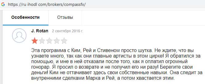 - Реальный негативный отзыв от человека, которого кинула плутовская брокерская компания CompassFX