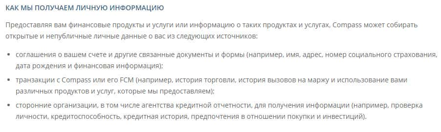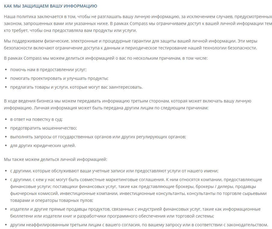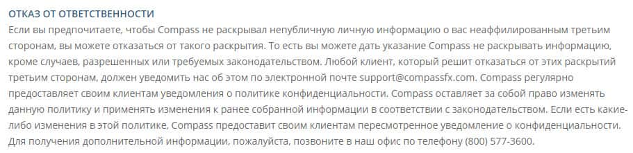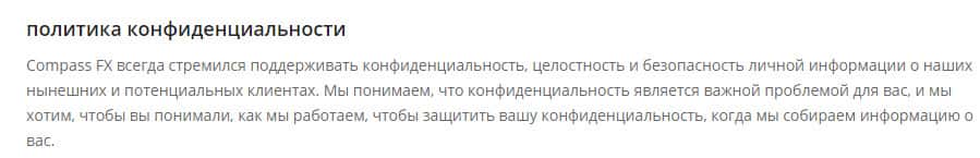 Политика конфиденциальности проходимцев из мошеннической брокерской конторы CompassFX