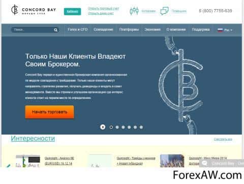 Дилинговый центр Concord Bay, где это - это настоящий ECN/STP брокер, работающий в партнёрстве с трейдерами. Созданная группой трейдеров, наша компания организована таким образом, чтобы поставить интересы клиентов-трейдеров на исключительно первое место. Наш бизнес построен на основополагающих принципах брокерского дела и для нас это Нейтралитет, Профессионализм и Прозрачность, Эффективность, Инновация и Сервис - те базовые ценности которые определяют суть Concord Bay. Задача брокера - предоставить клиентам доступ к рынку и снабдить эффективной системой достижения поставленных задач. Отсутствие конфликта интересов с клиентами является базовой ценностью бизнес модели Concord Bay. Клиент Concord Bay это центр нашего бизнеса. Задачи наших клиентов являются основным двигателем формулирующим те решения которые которые мы предлагаем, и эти задачи мы решаем с максимальной эффективностью.
