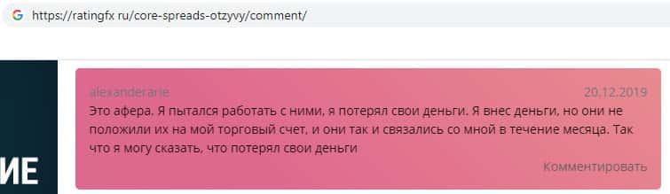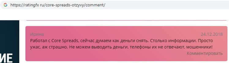 Отзывы зарубежных клиентов лохотрона Кор Спред
