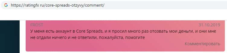 - Клиент больше не хочет сотрудничать с аферистами Core Spreads