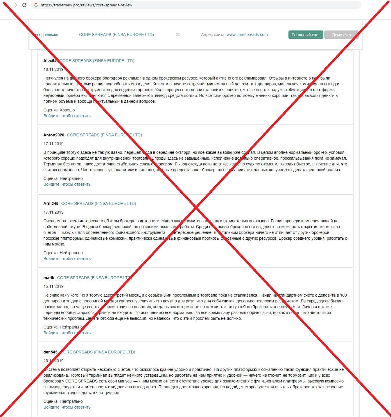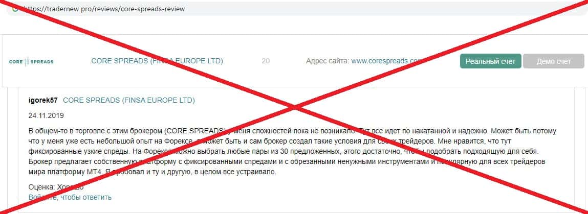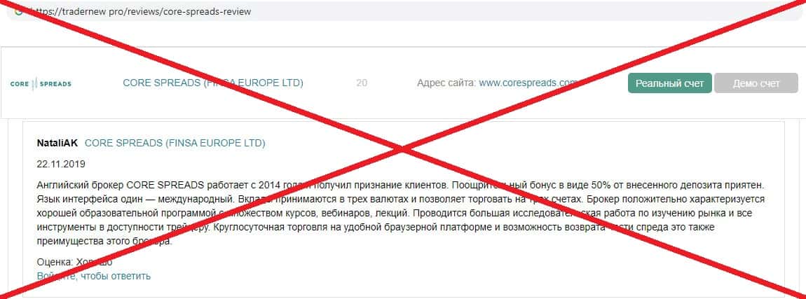 Махинаторы Core Spreads не экономят на заказных отзывах