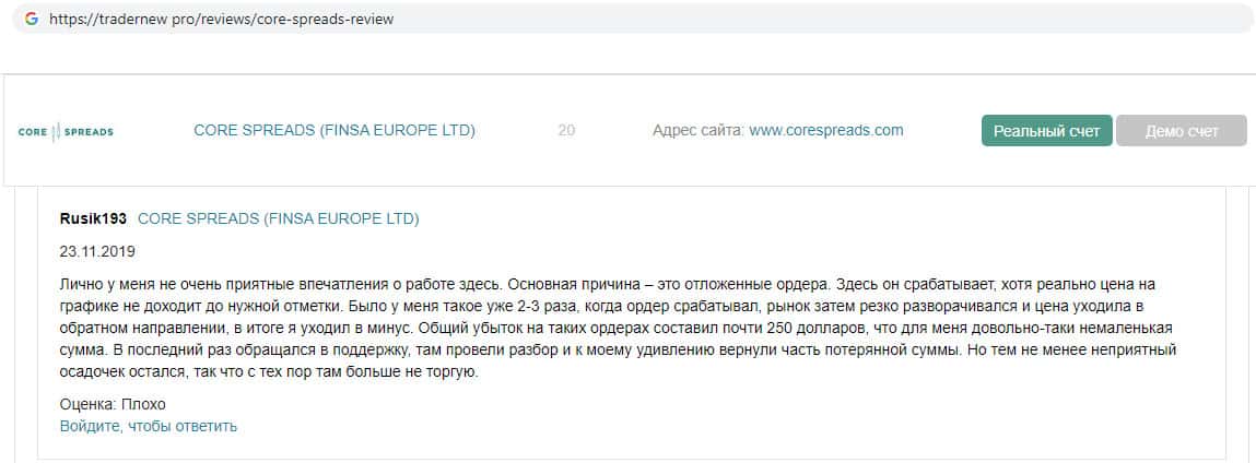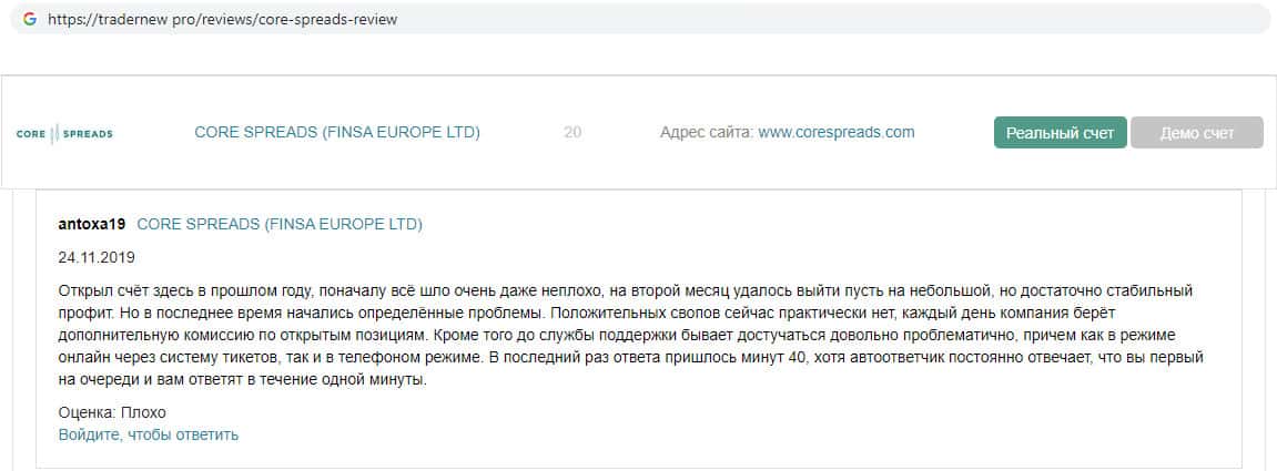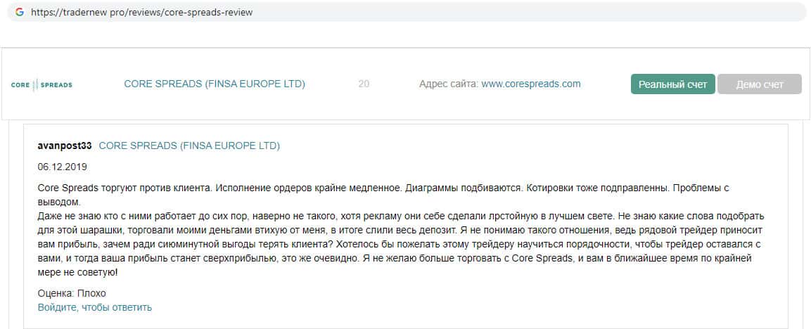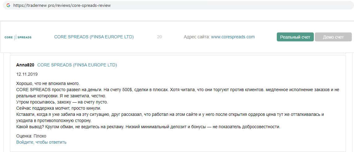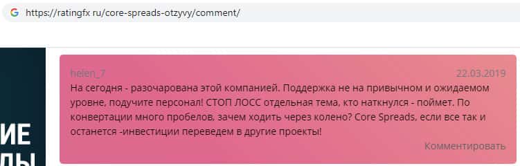 - Отзывы зарубежных клиентов лохотрона Кор Спред