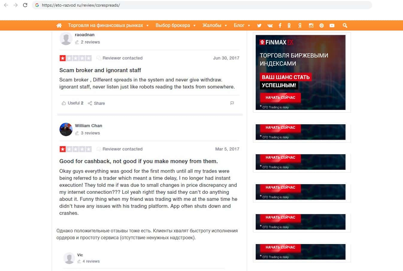 eto-razvod ru - сайт содержащий англоязычные отзывы о аферистах Core Spreads