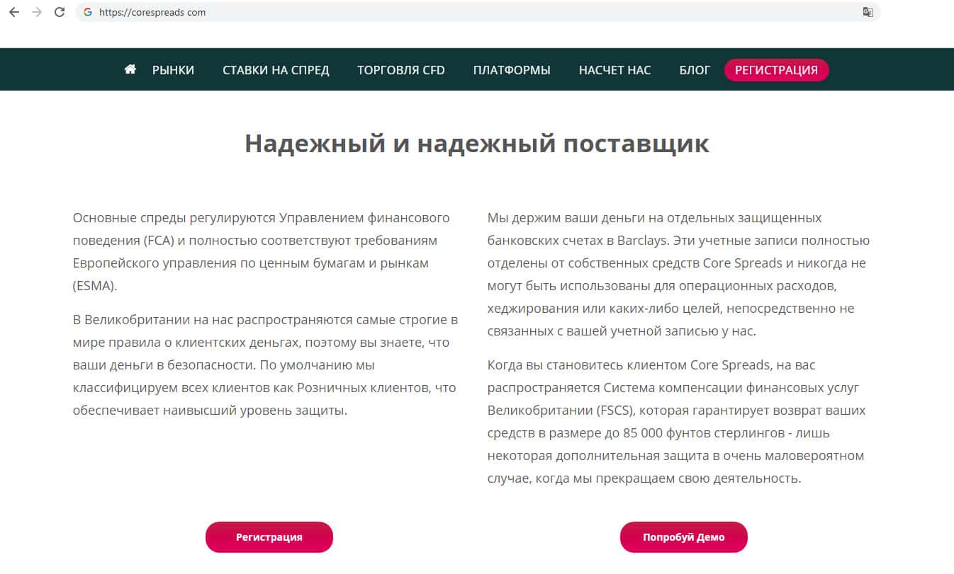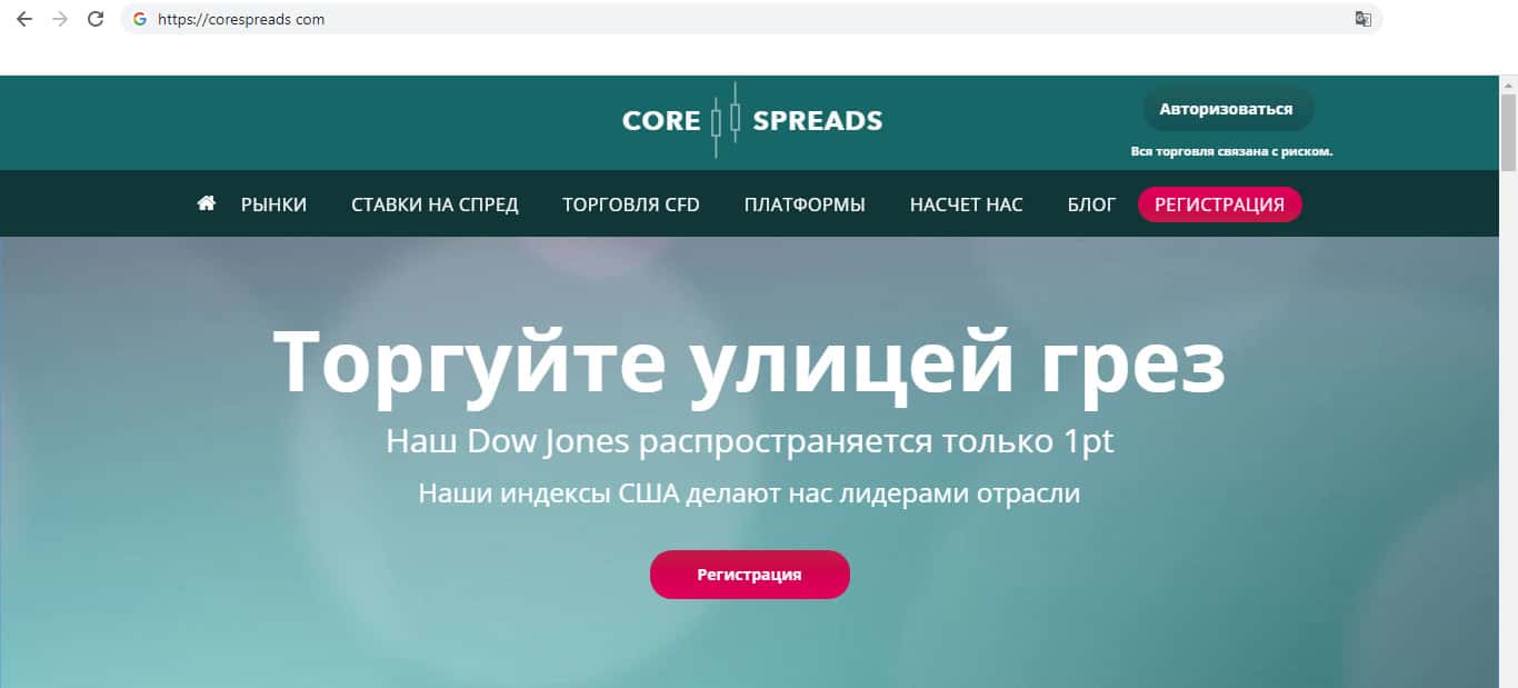 - Обзор главного интернет ресурса компании жуликов Core Spreads